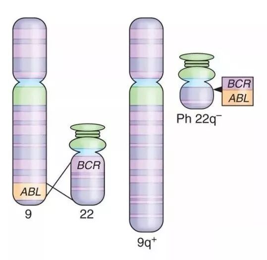 后来科学家证实慢粒与染色体异常有关:9号染色体和22号染色体发生“张冠李戴”现象,正巧把两个关键基因“拦腰斩断”,也就是互换,两个基因“嫁接”了,导致不正常基因编码出的蛋白质在细胞生长、增殖、分化中起了“坏作用”——“病态”细胞中酪氨酸激酶始终打开,无法调控关闭,血液中粒细胞不受控制地大量产生,挤压正常造血细胞的生存空间!